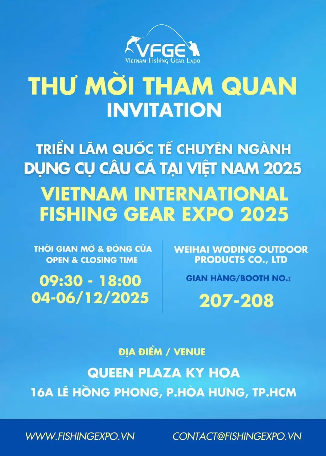 12月4日,一场备受瞩目的渔具行业盛会——2025越南渔具博览会在越南胡志明市皇后广场盛大启幕,沃鼎渔具携众多爆款产品与年度新品参展,于B207-208展位精彩亮相。 2025越南渔具博览会吸引了众多渔具品牌、经销商与行业专家、钓鱼爱好者齐聚一堂。 沃鼎渔具此次携众多产品参展,致力于拓展渔具市场,让更多钓友了解“中国制造”的匠心产品。同时,也期待在这个多重钓鱼文化交融的盛会中,与众多渔具品牌共同探索渔具行业的前沿技术与创新理念。将所见所感融入到研发中,产出更优质、更符合渔具行业发展脉络的渔具展品,服务更多钓鱼人。 当日上午9:30,2025越南渔具博览会正式开展。沃鼎B207-208展位内,展出了沃鼎经典爆款,2023年首发至今中国市场累计销量突破200万支的沃鼎王者神剑系列;灵感源自GT超跑,融合动感元素的超燃GT超跑系列;风起东方,自成绝色的国风钓竿王朝系列以及钓伞、配件等沃鼎渔具产品。 展出的系列产品中,既有往年经受市场验证的经典,也有2025年推出的创新升级之作。展位内,丰富的产品品类与吸睛的外观设计,吸引了一众参展人驻足参观,大家纷纷选择上手体验,在沃鼎工作人员的详尽讲解下进一步了解了沃鼎产品的优异性能。 现场直观的体验,往往比任何资料都更具说服力。正是在这种亲身感受与专业沟通中,展会首日,便有许多参展人对沃鼎产品表达了浓厚的兴趣与合作意向。 越南展会首日在热烈的氛围中告一段落,感谢来自钓友与同行的认可。 征程刚启,好戏还在后头。未来两天(12月5日-6日),沃鼎团队将继续在胡志明市皇后广场恭候各位钓友与合作伙伴,期待与您继续探讨渔具的创新与未来。 在中国渔具从“制造”到“智造”的浪潮中,沃鼎渔具也将作为一朵奔涌向前的浪花,积极开拓世界市场,寻求来自全球的良好合作契机,为每一位钓鱼人提供优质的产品与良好的服务,助力钓鱼行业的蓬勃发展。